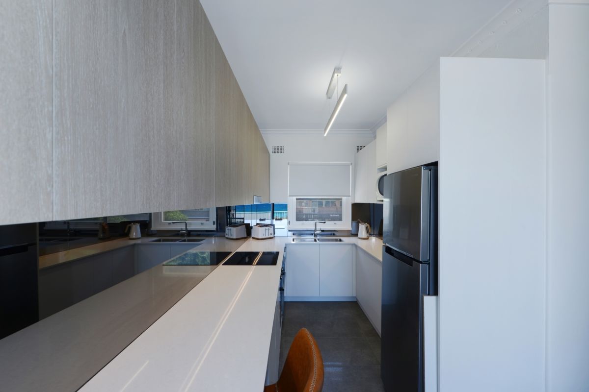 - Galley-style kitchen, full bathroom and internal laundry