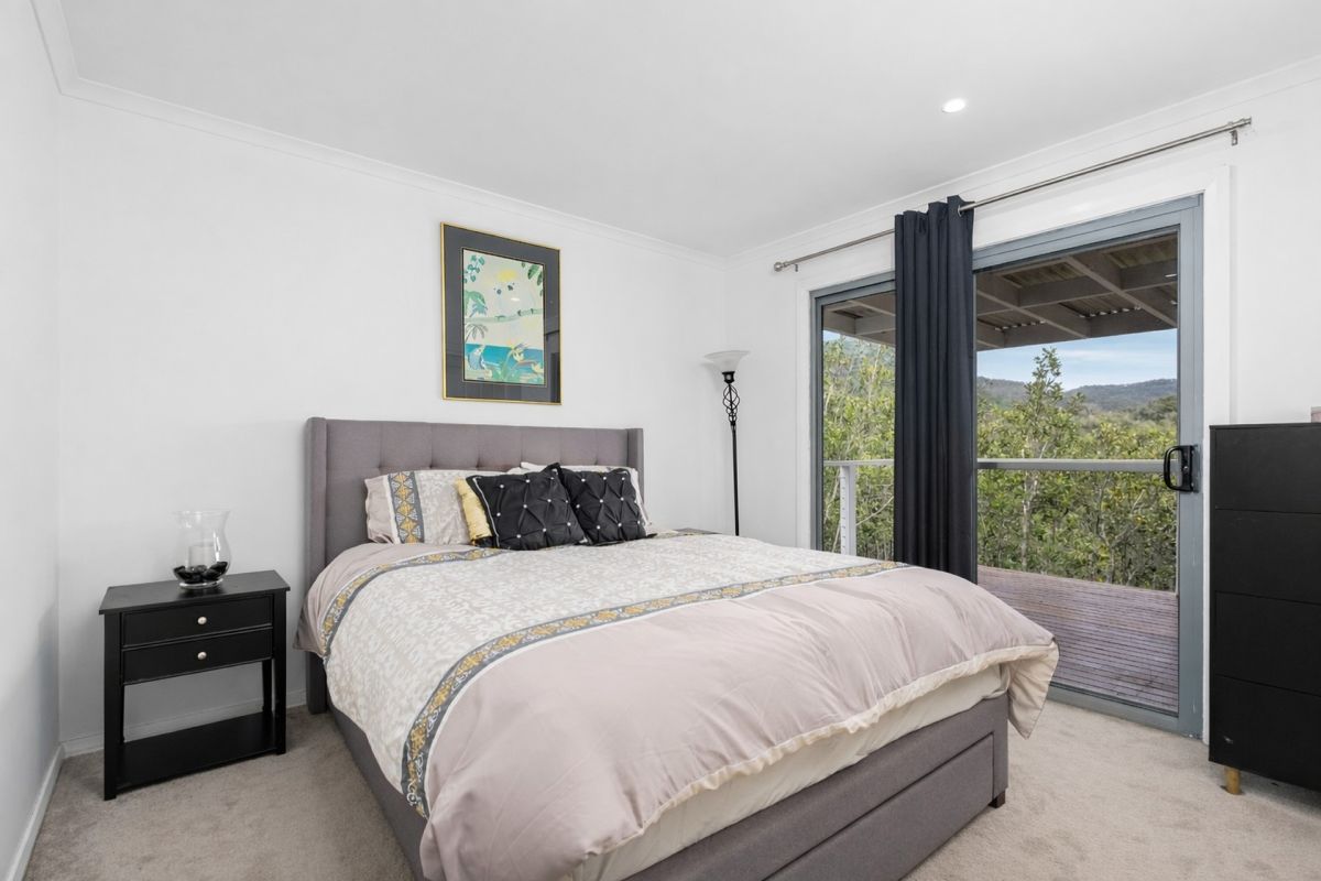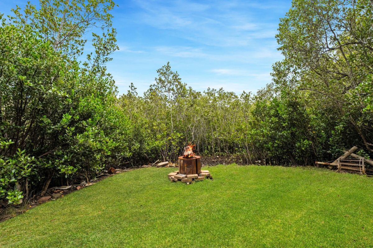 From the moment you arrive, the peaceful surrounds make an immediate impression. Framed by pristine bushland and abundant with natural wildlife, the home enjoys a prized south-east aspect, allowing soft morning light to filter through the living spaces while the rear deck captures uninterrupted views across the mangroves toward distant mountain ranges. It is a setting that feels private, serene and remarkably untouched.