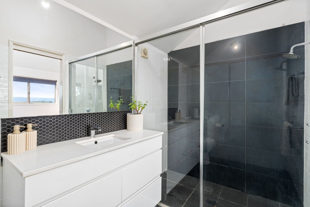 The spacious living areas are oriented to take in the superb views and flow seamlessly through bi-fold doors to the balcony – perfect for entertaining with sunset drinks! Three of the bedrooms are on the entry level, each with built-in robes together with a luxurious master bathroom with a free-standing bath, double basins, and a stone feature wall. The parent's retreat is privately positioned upstairs and boasts a generous walk in robe, ensuite with a double shower and split system air-conditioning.