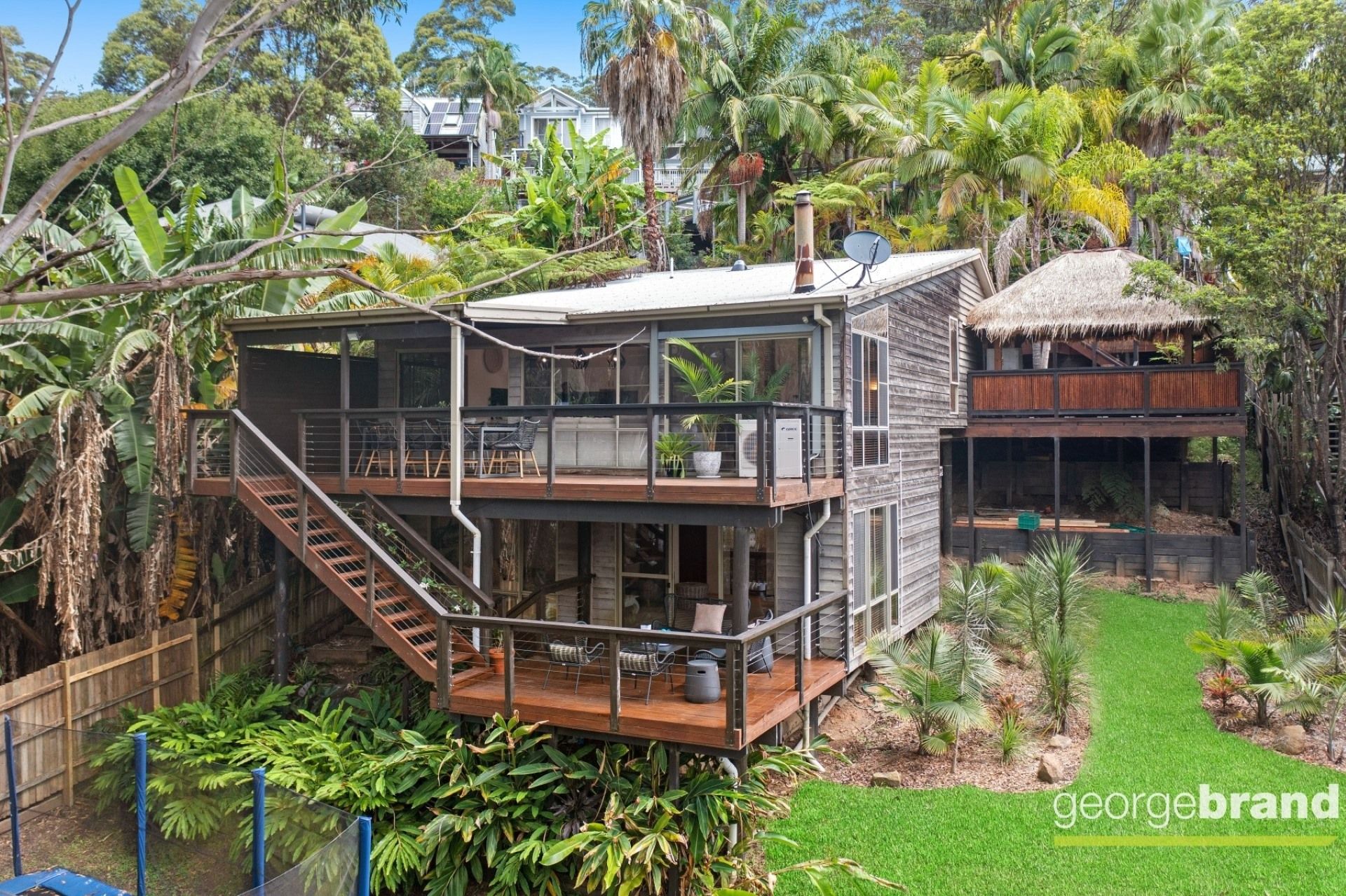 To the side of the home is a second outdoor area and is the perfect entertaining area for family and friends. Room for the BBQ, outdoor kitchen, TV and more, complete with traditional thatched roof and huge heated spa. You need to see this! Only minutes from Avoca and Copacabana Beaches, shops, cafes. This family retreat is incredibly appealing.